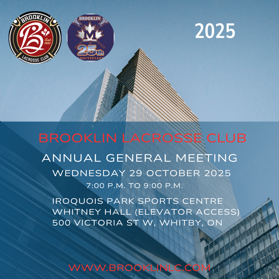 Mark your calendars for the AGM. All interested parties are encouraged to attend and set the path for the Brooklin Lacrosse Club and the Brooklin Merchants for the 2026 season and beyond.